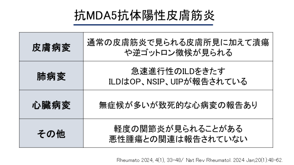 #3. 抗MDA5抗体陽性皮膚筋炎 Rheumato 2024, 4(1), 33-48/ Nat Rev Rheumatol. 2024 Jan;20(1):48-62.