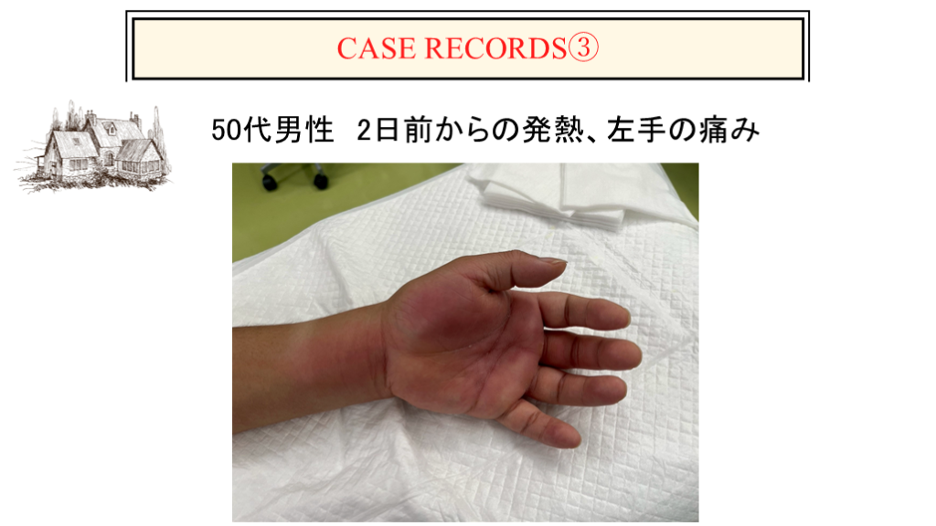 #12. 50代男性 2日前からの発熱、左手の痛み
