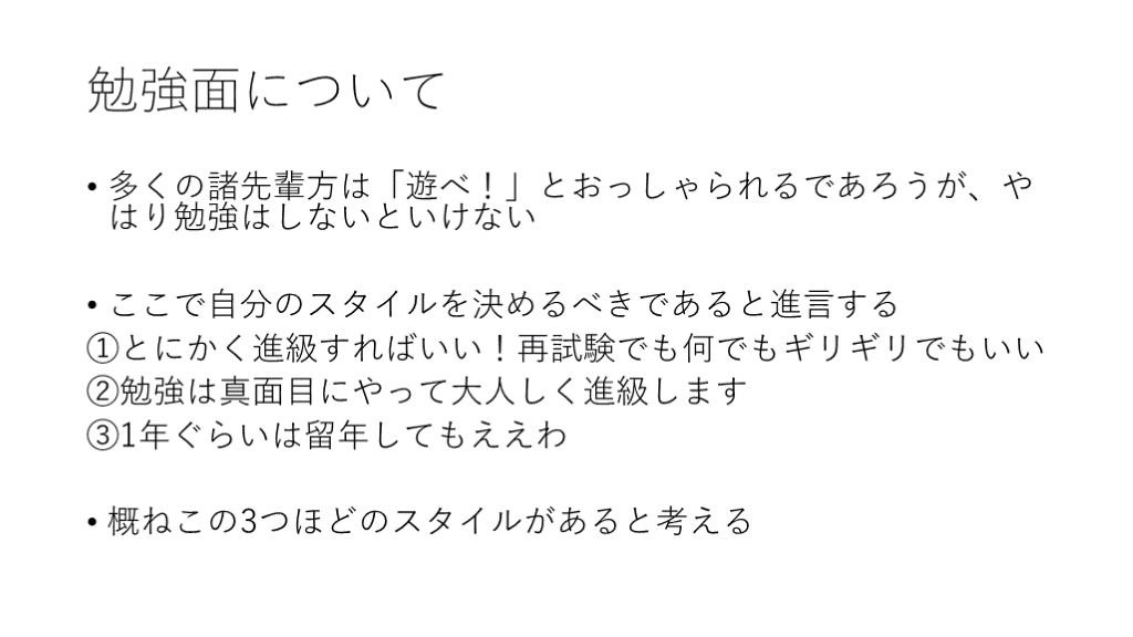 #3. 勉強面について 多くの諸先輩方は「遊べ!」とおっしゃられるであろうが、やはり勉強はしないといけない