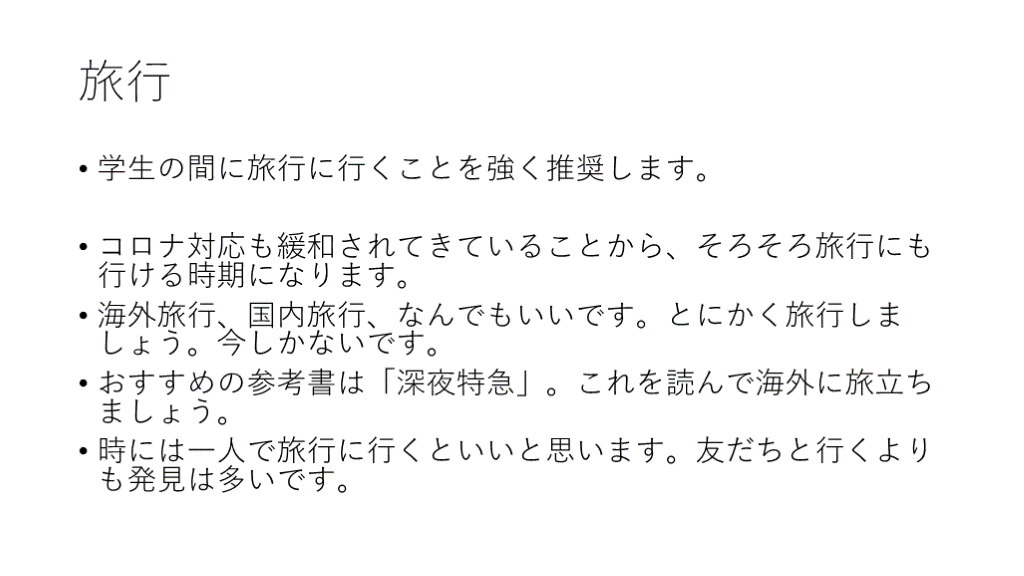 海外旅行、国内旅行、なんでもいいです。とにかく旅行しましょう。今しかないです。