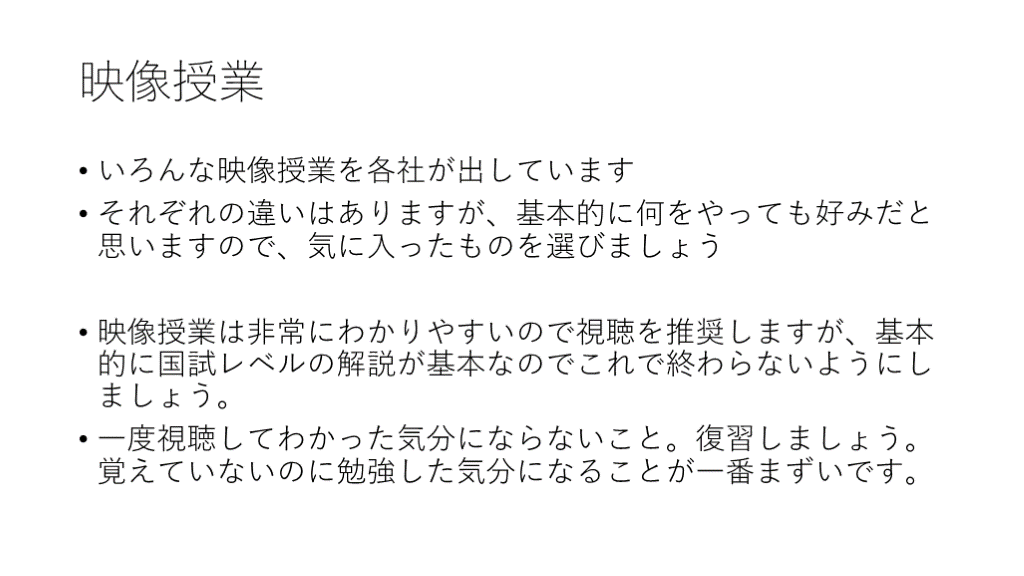 一度視聴してわかった気分にならないこと。復習しましょう。覚えていないのに勉強した気分になることが一番まずいです。