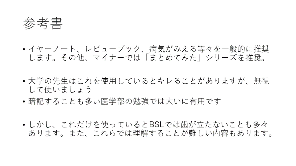 しかし、これだけを使っているとBSLでは歯が立たないことも多々あります。また、これらでは理解することが難しい内容もあります。