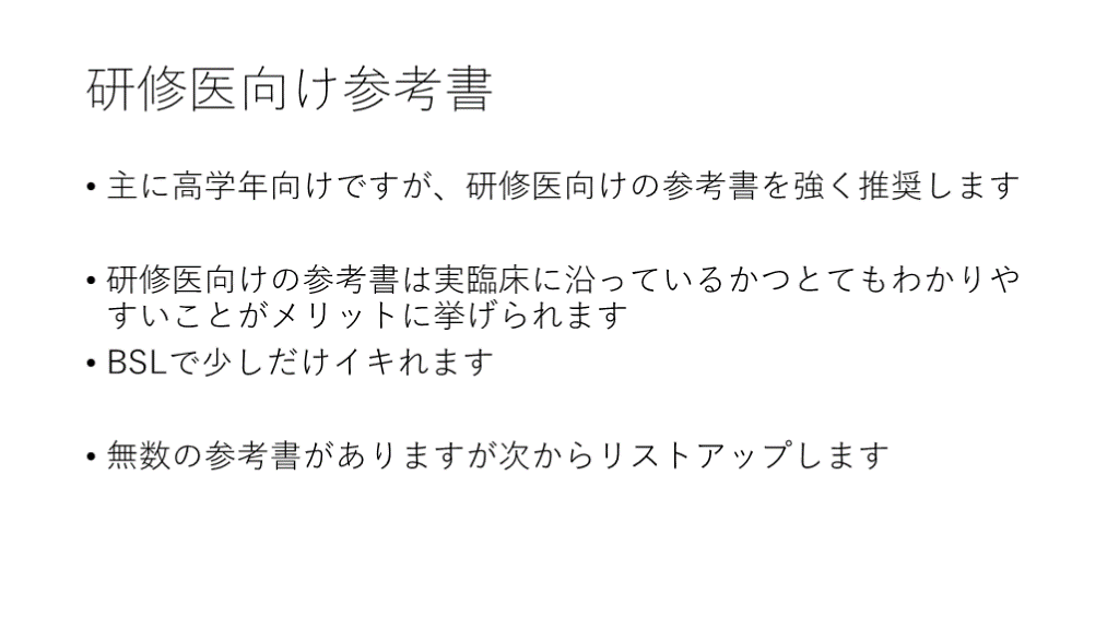 研修医向けの参考書は実臨床に沿っているかつとてもわかりやすいことがメリットに挙げられます