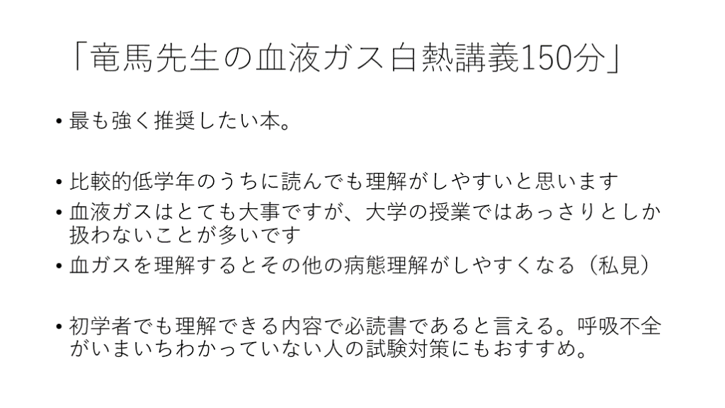 #16. 「竜馬先生の血液ガス白熱講義150分」 最も強く推奨したい本。