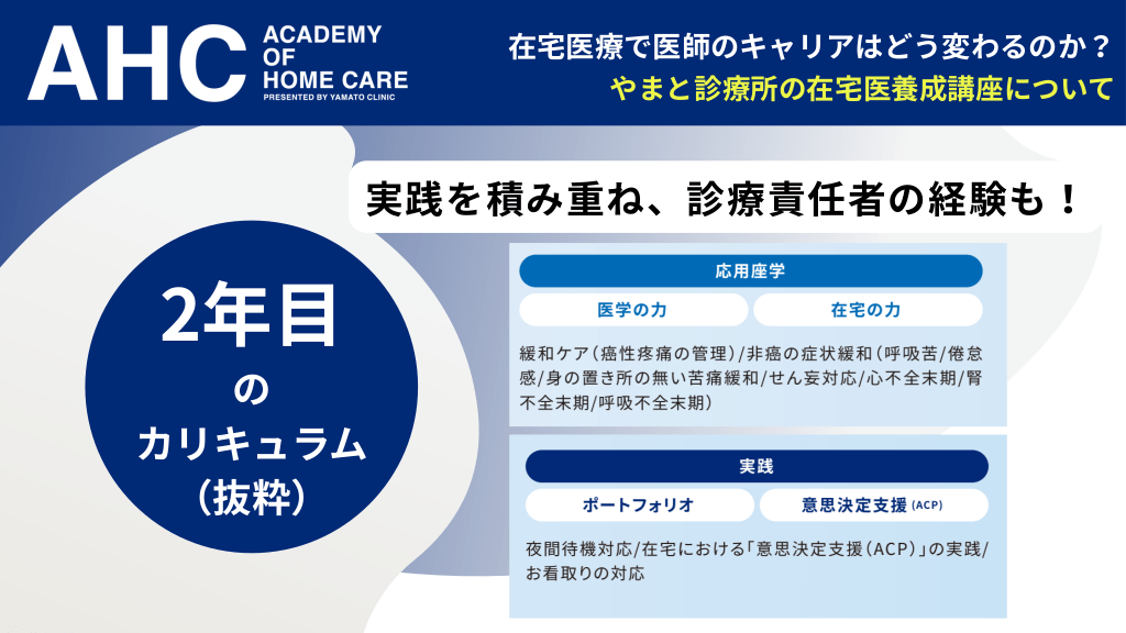 #22. 在宅医療で医師のキャリアはどう変わるのか? やまと診療所の在宅医養成講座について 実践を積み重ね、診療責任者の経験も! 2年目 の カリキュラム (抜粋)