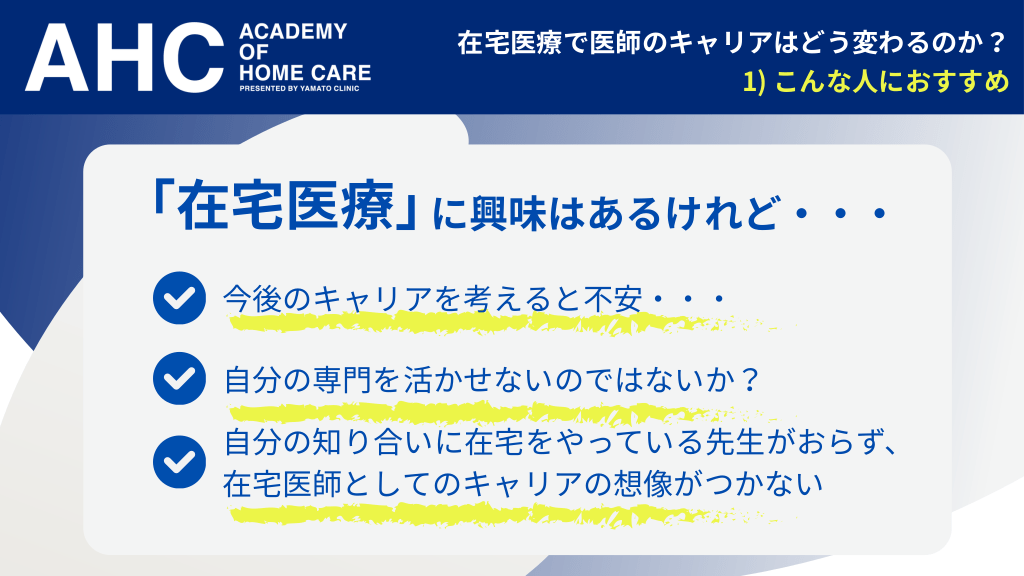 #1. 臨床・マネジメント・開業まで 在宅医療を徹底サポート 「在宅医療」 で 医師のキャリアは どう 変わる のか?