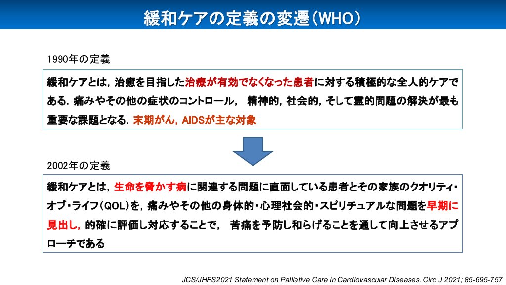 講演を通じて、循環器治療と緩和ケアは対立するものではなく、患者の価値観を尊重しながら併存させるべき医療であるとしています。