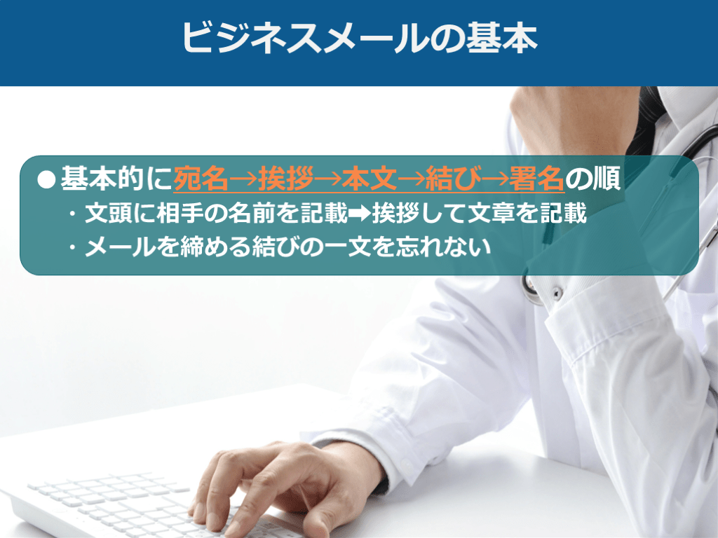 #6. ビジネスメールの基本 ●基本的に宛名→挨拶→本文→結び→署名の順