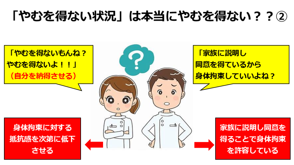 (自分を納得させる) 身体拘束に対する