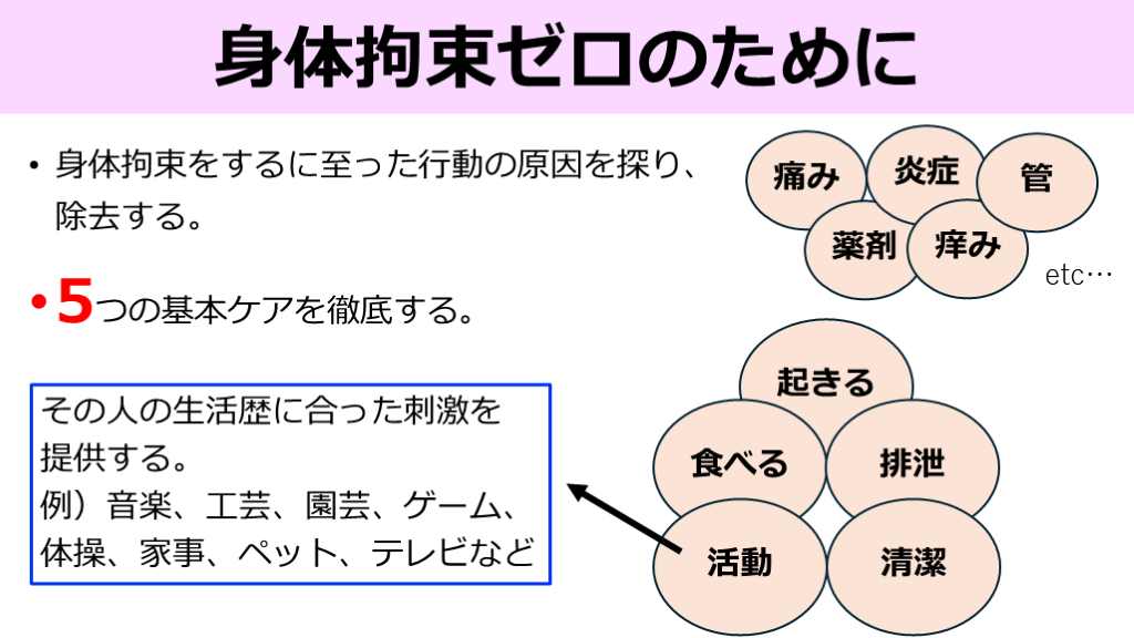 身体拘束ゼロを目指すためのアプローチ