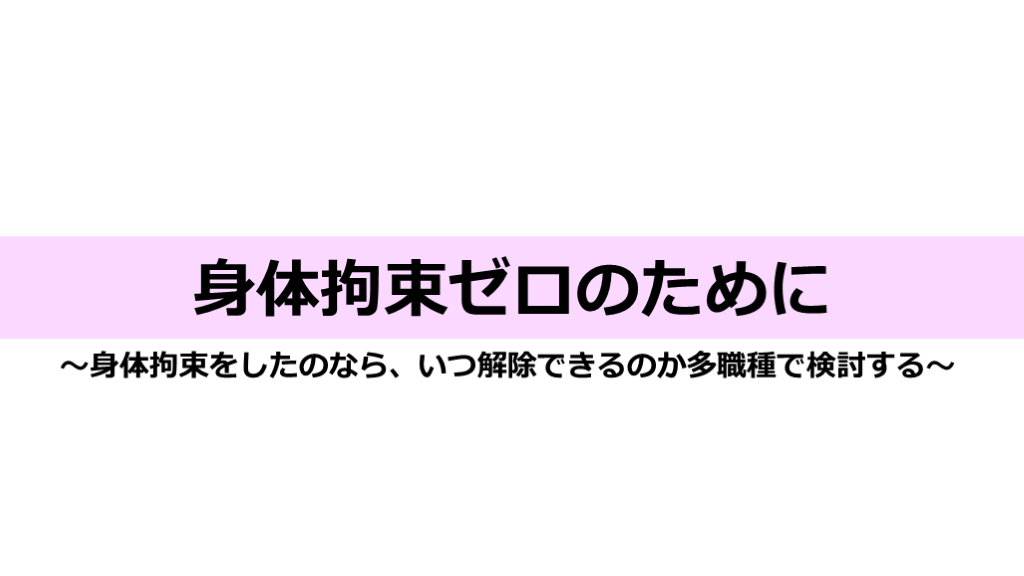 #13. 身体拘束ゼロのために 〜身体拘束をせずに他の方法で改善できないか考える〜