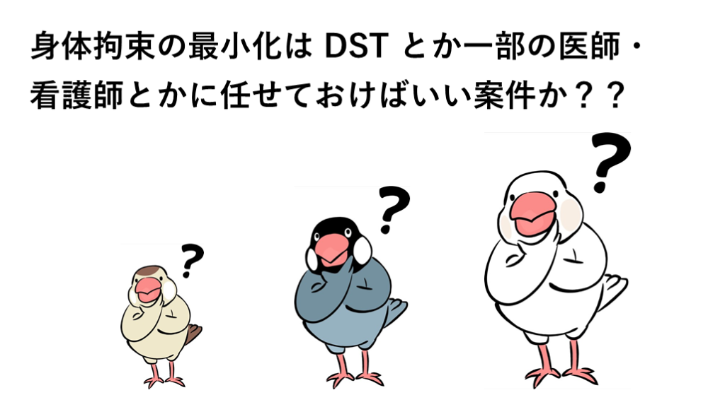 #17. 身体拘束の最小化は DST とか一部の医師・看護師とかに任せておけばいい案件か??