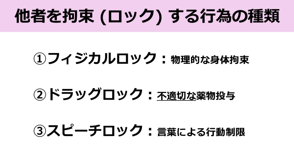 #23. 他者を拘束 (ロック) する行為の種類 フィジカルロック:物理的な身体拘束