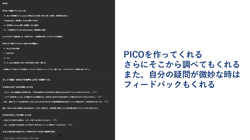 #37. PICOを作ってくれる さらにそこから調べてもくれる また、自分の疑問が微妙な時は フィードバックもくれる