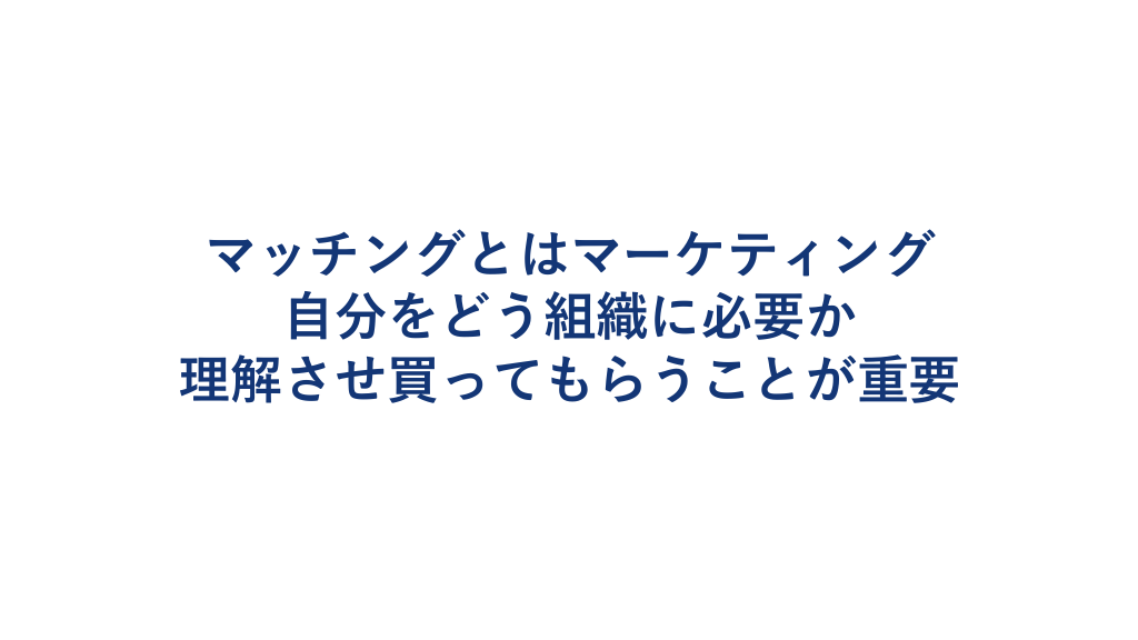 #50. マッチングとはマーケティング 自分をどう組織に必要か 理解させ買ってもらうことが重要