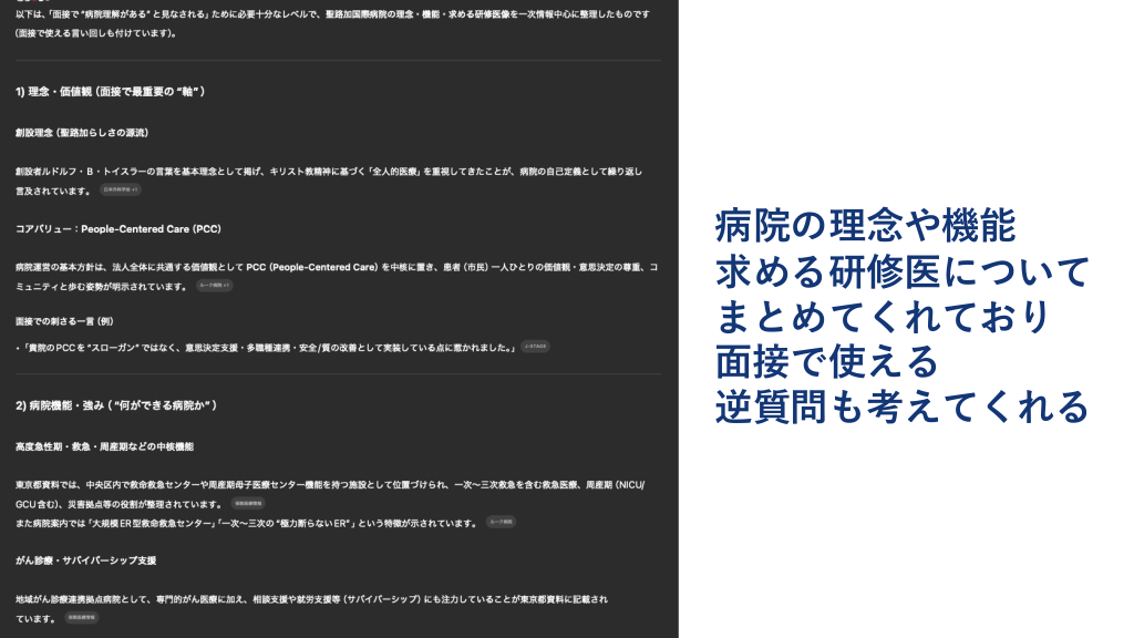 #52. 病院の理念や機能 求める研修医について まとめてくれており 面接で使える 逆質問も考えてくれる