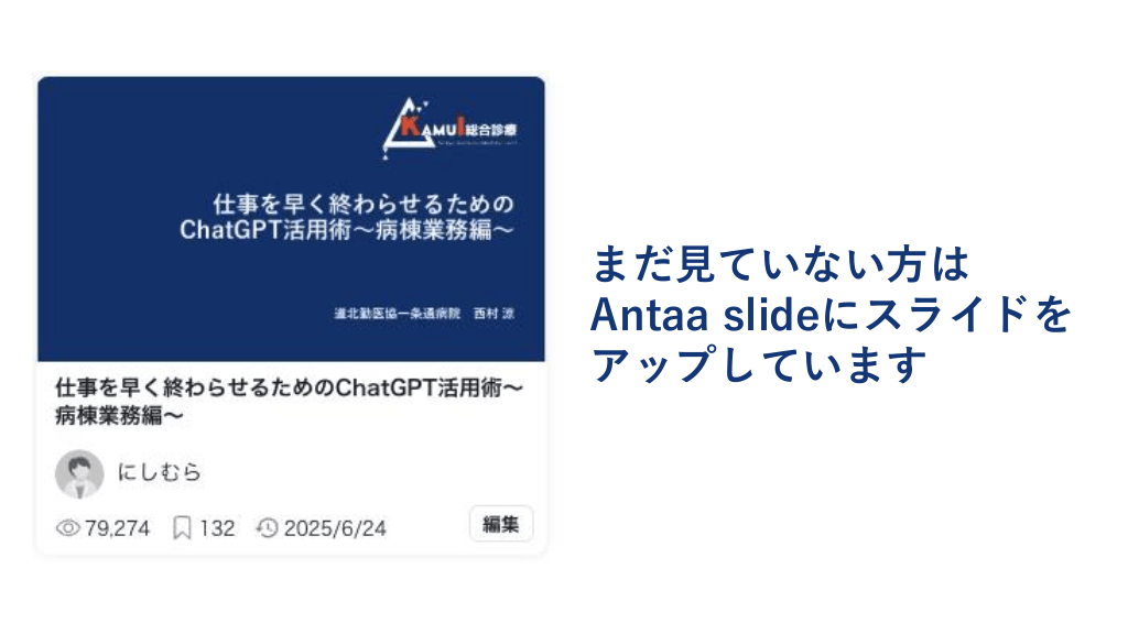 #1. 仕事を早く終わらせるための ChatGPT入門〜勉強編〜 道北勤医協一条通病院 西村 涼