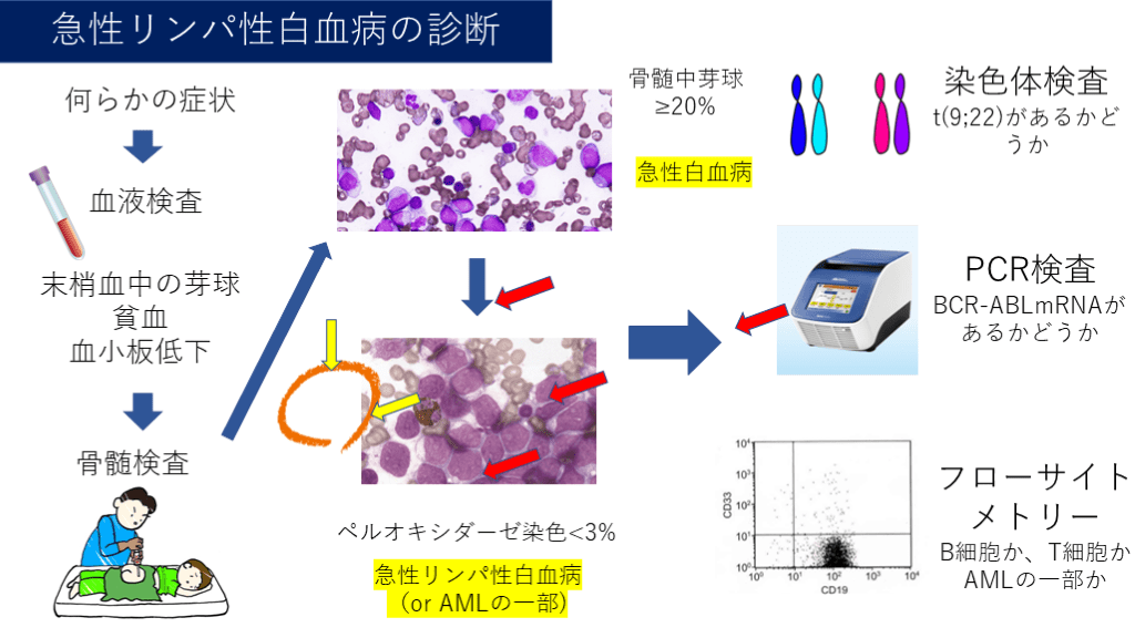 血小板低下 骨髄検査 骨髄中芽球≥20% 急性白血病 ペルオキシダーゼ染色<3% 急性リンパ性白血病