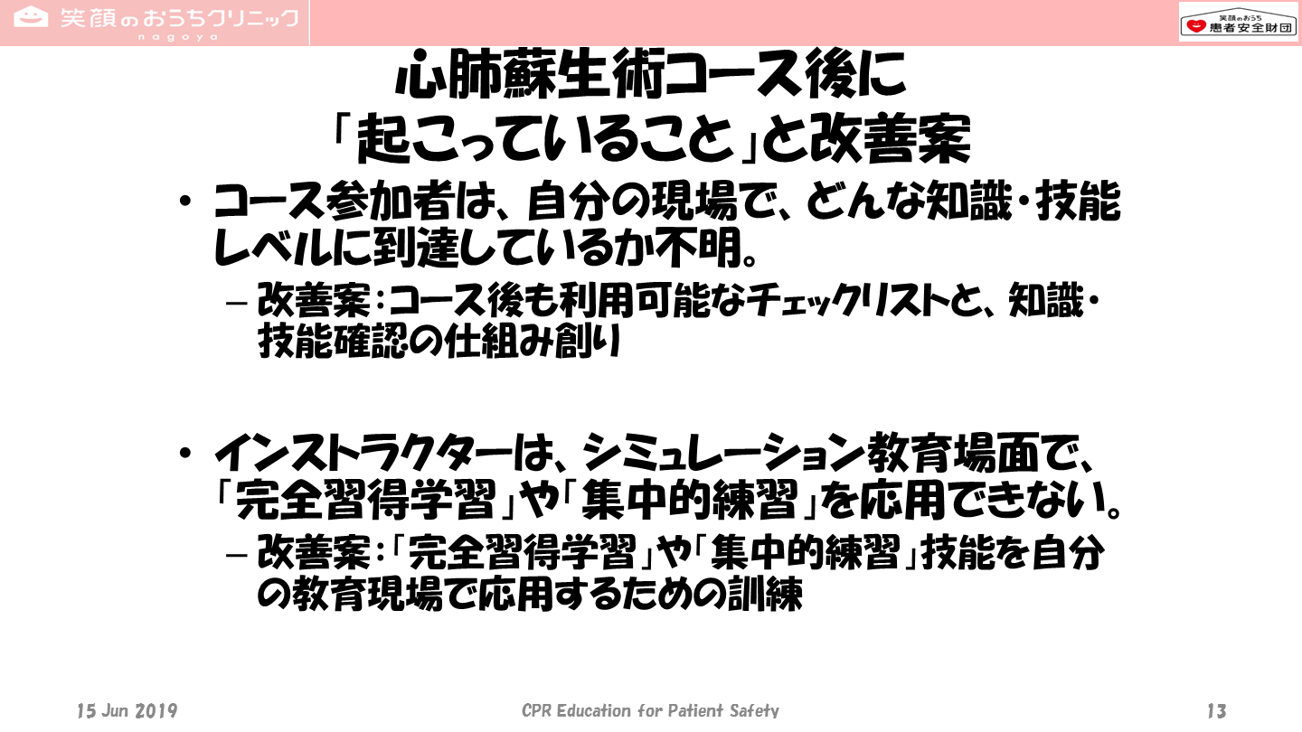 15 Jun 2019 CPR Education for Patient Safety 12 市民と医療従事者向けの教育提案 #13.