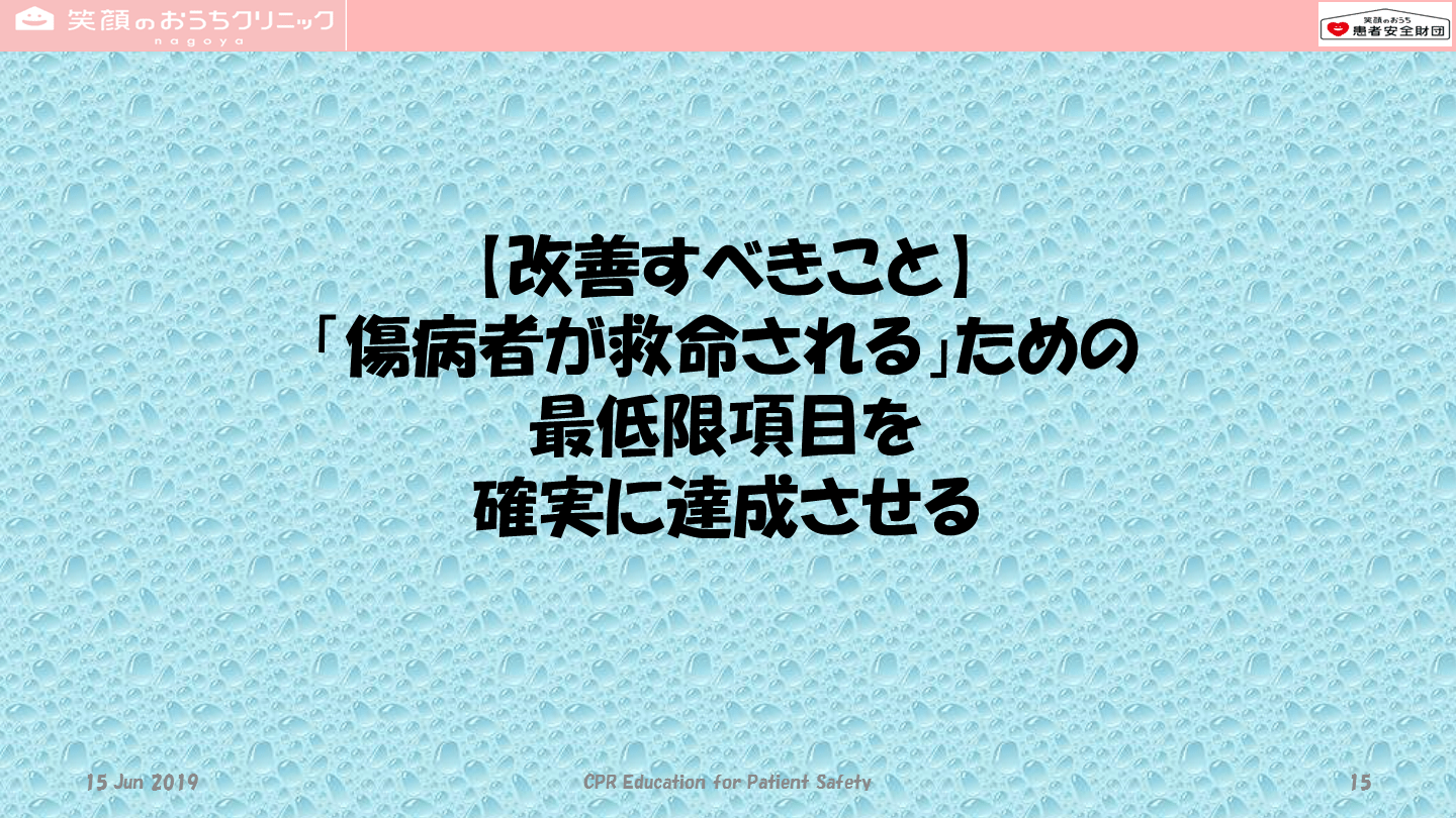 【改善すべきこと】「傷病者が救命される」ための最低限項目を確実に達成させる CPR Education for Patient Safety 15 15 Jun 2019 #16.