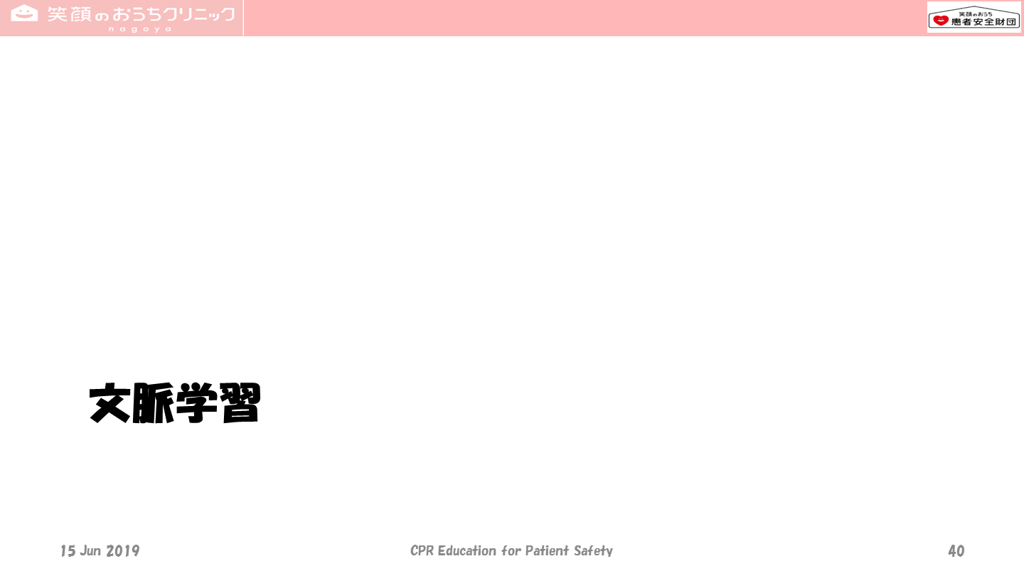 文脈学習 15 Jun 2019 CPR Education for Patient Safety 40 実践的な学習環境の構築 #41.