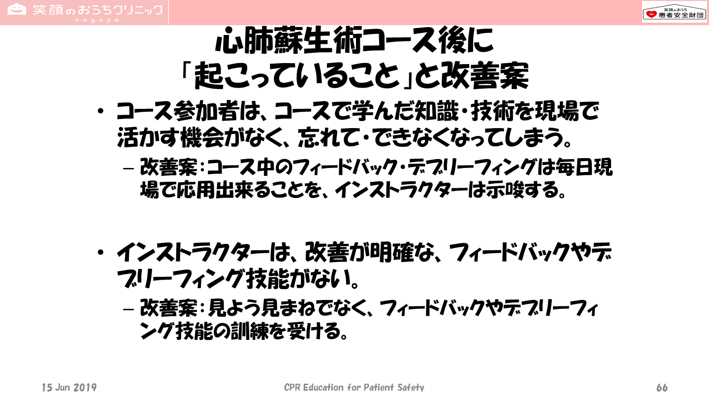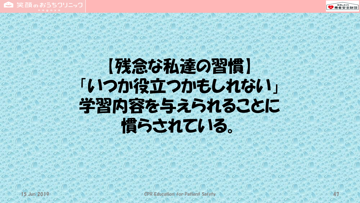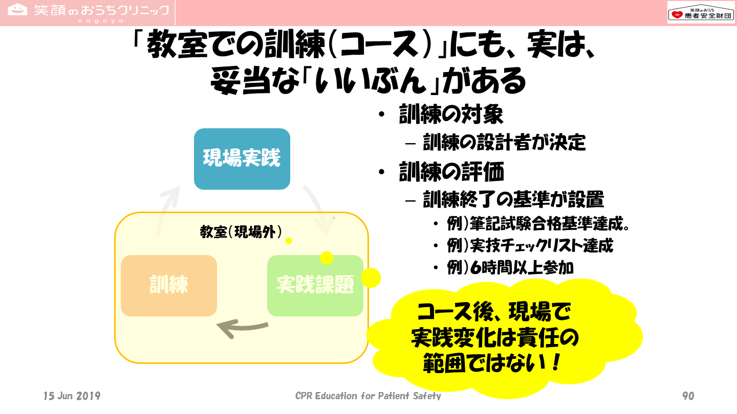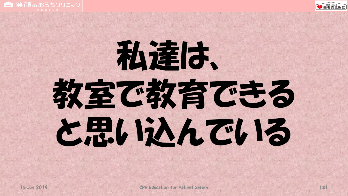 私達は、教室で教育できると思い込んでいる CPR Education for Patient Safety 131 15 Jun 2019 #132.