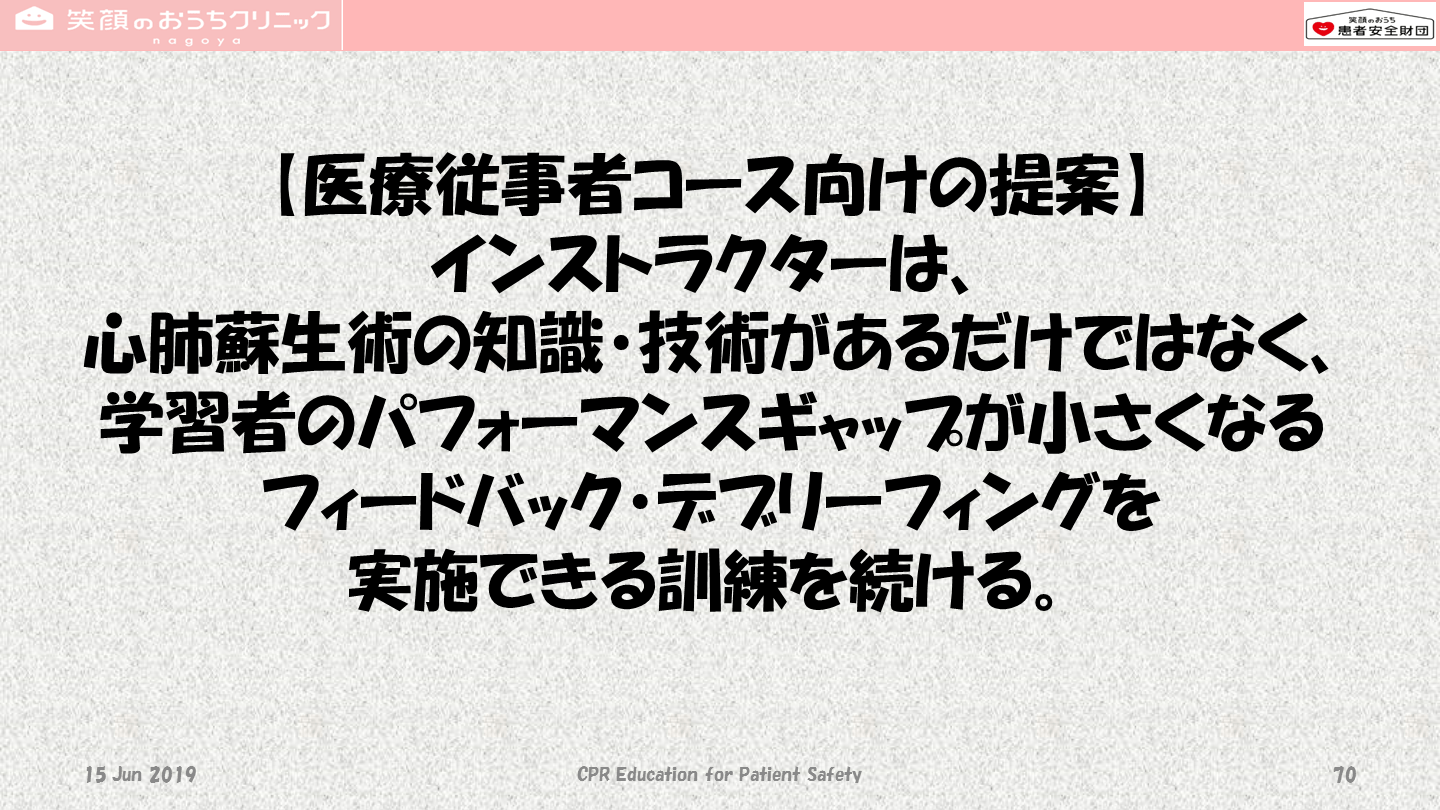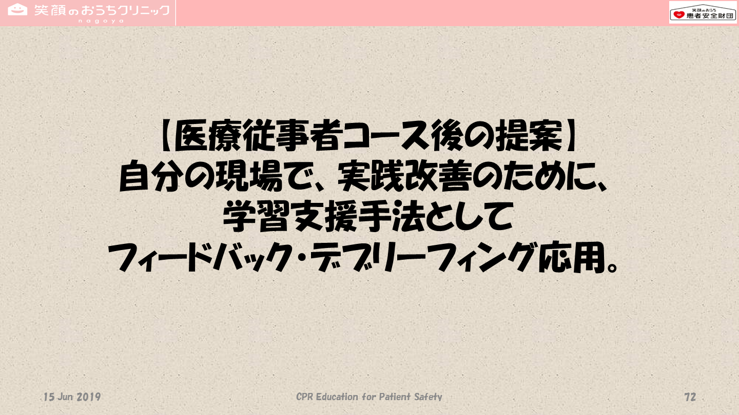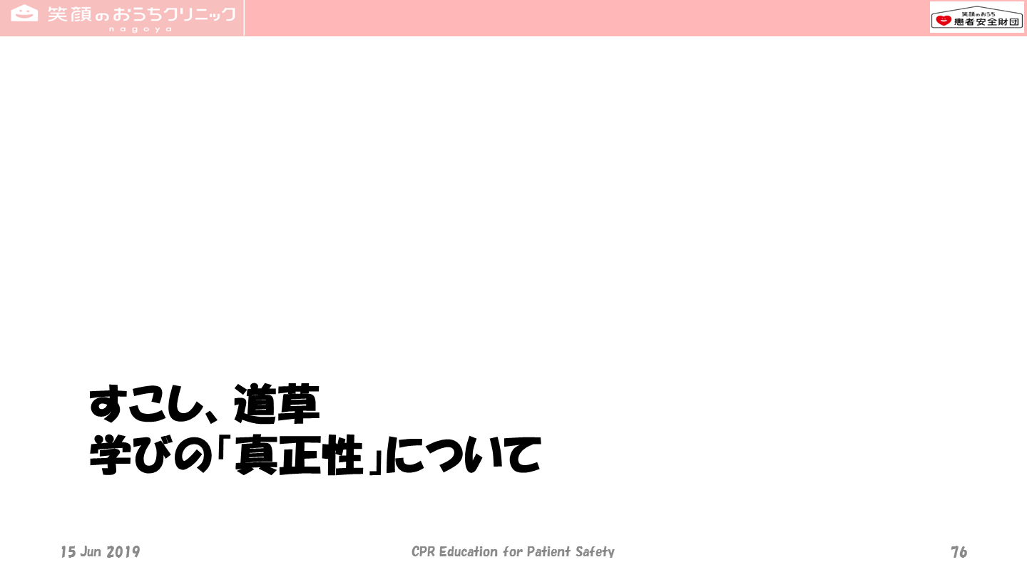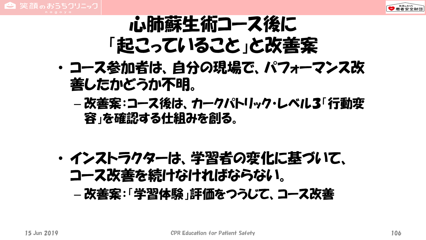 私達は、教室で教育できると思い込んでいる CPR Education for Patient Safety 131 15 Jun 2019 #132.