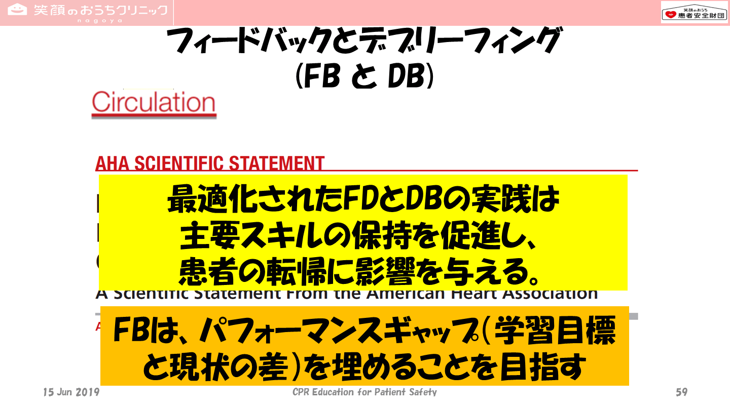 反復練習を含めたフィードバック 15 Jun 2019 CPR Education for Patient Safety フィードバック・システムであれば、