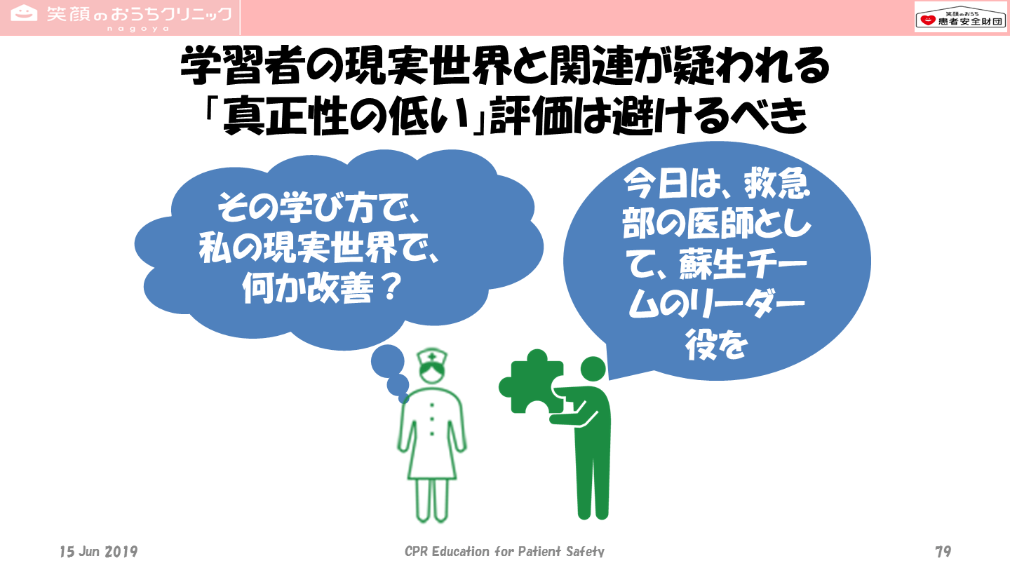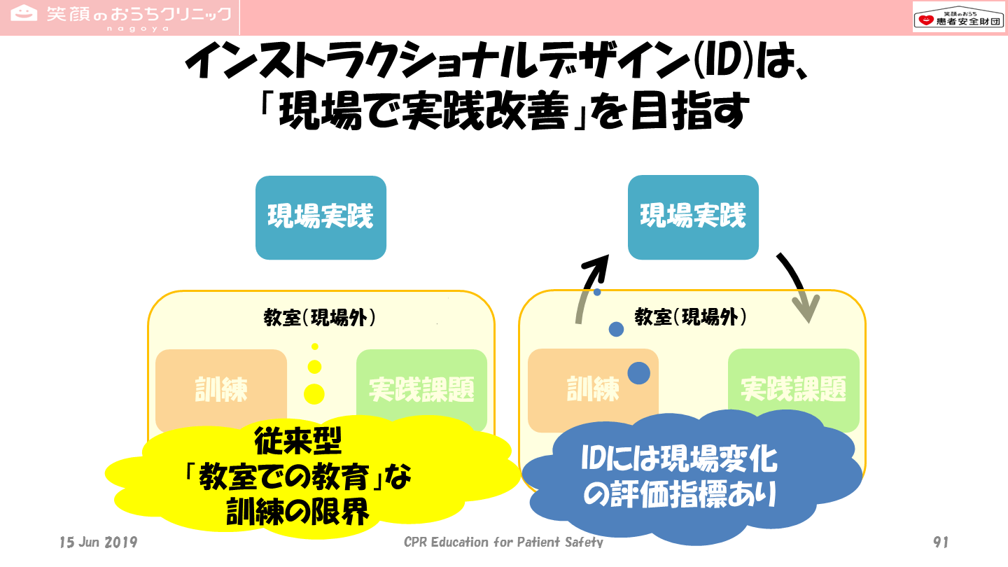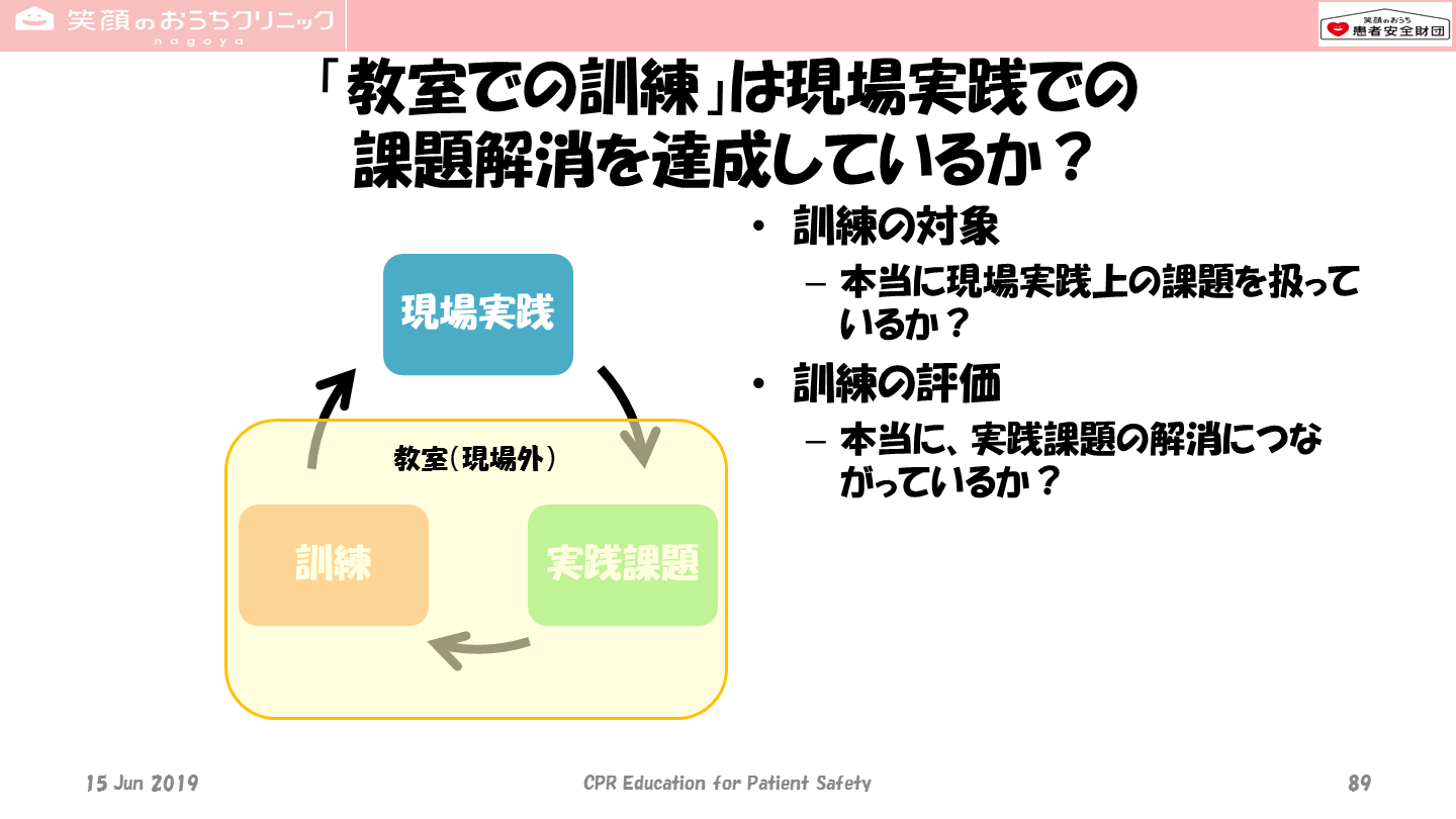 教室で知識・技術与えればどうにかなるだろう? 15 Jun 2019 CPR Education for Patient Safety 学習者が、現場で問題解決できてこそ