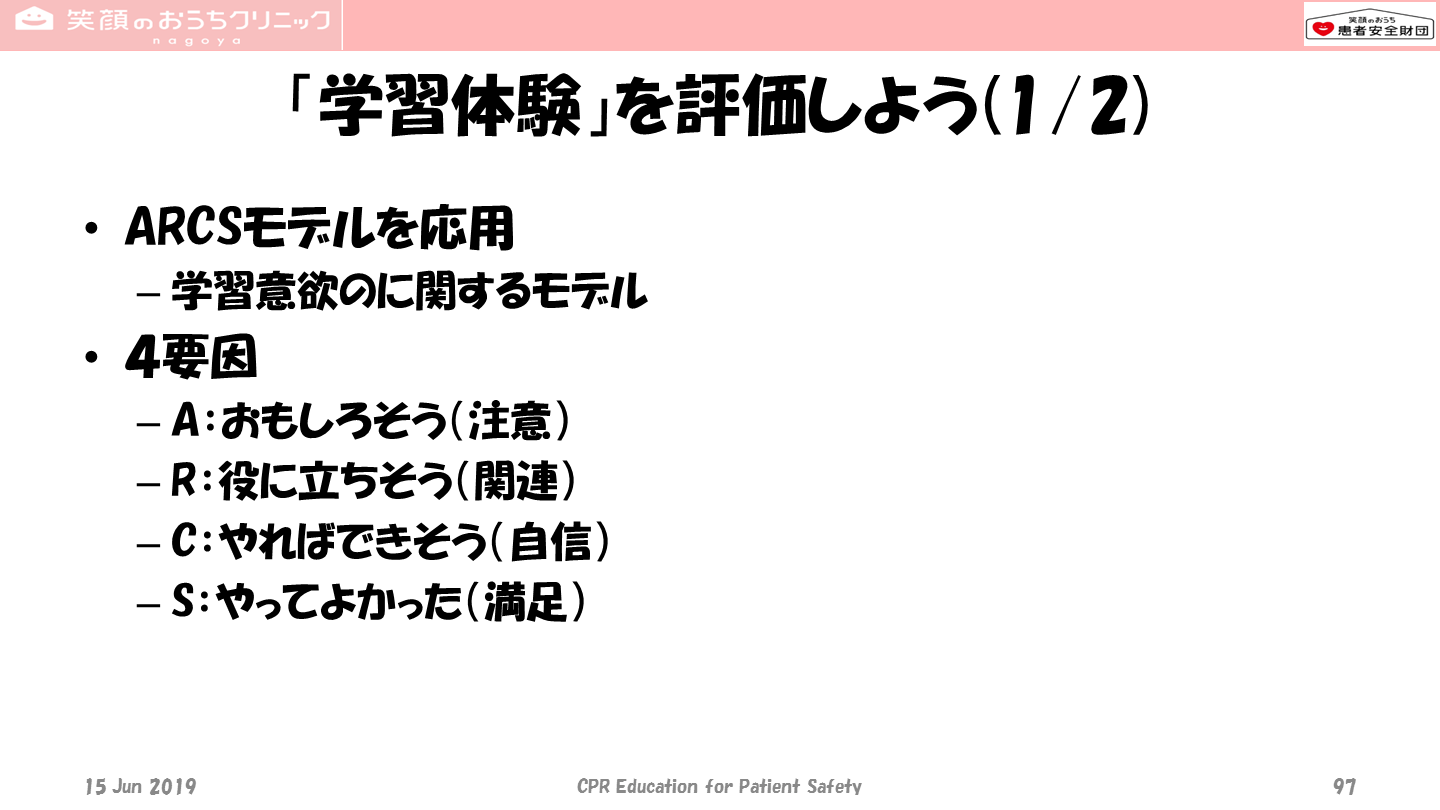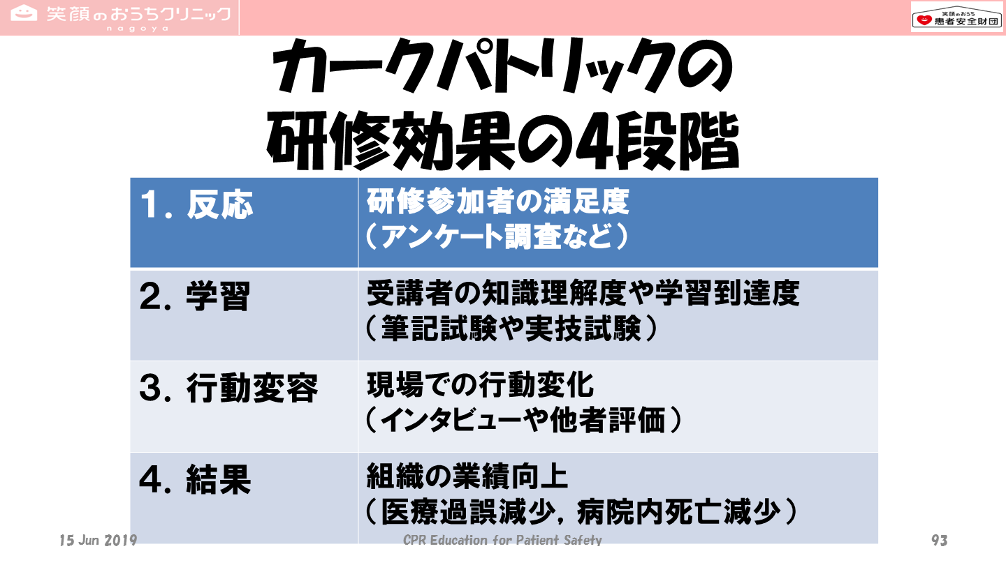 最近の教育・訓練評価方法:成功事例法 15 Jun 2019 CPR Education for Patient Safety 147 この161-3頁に