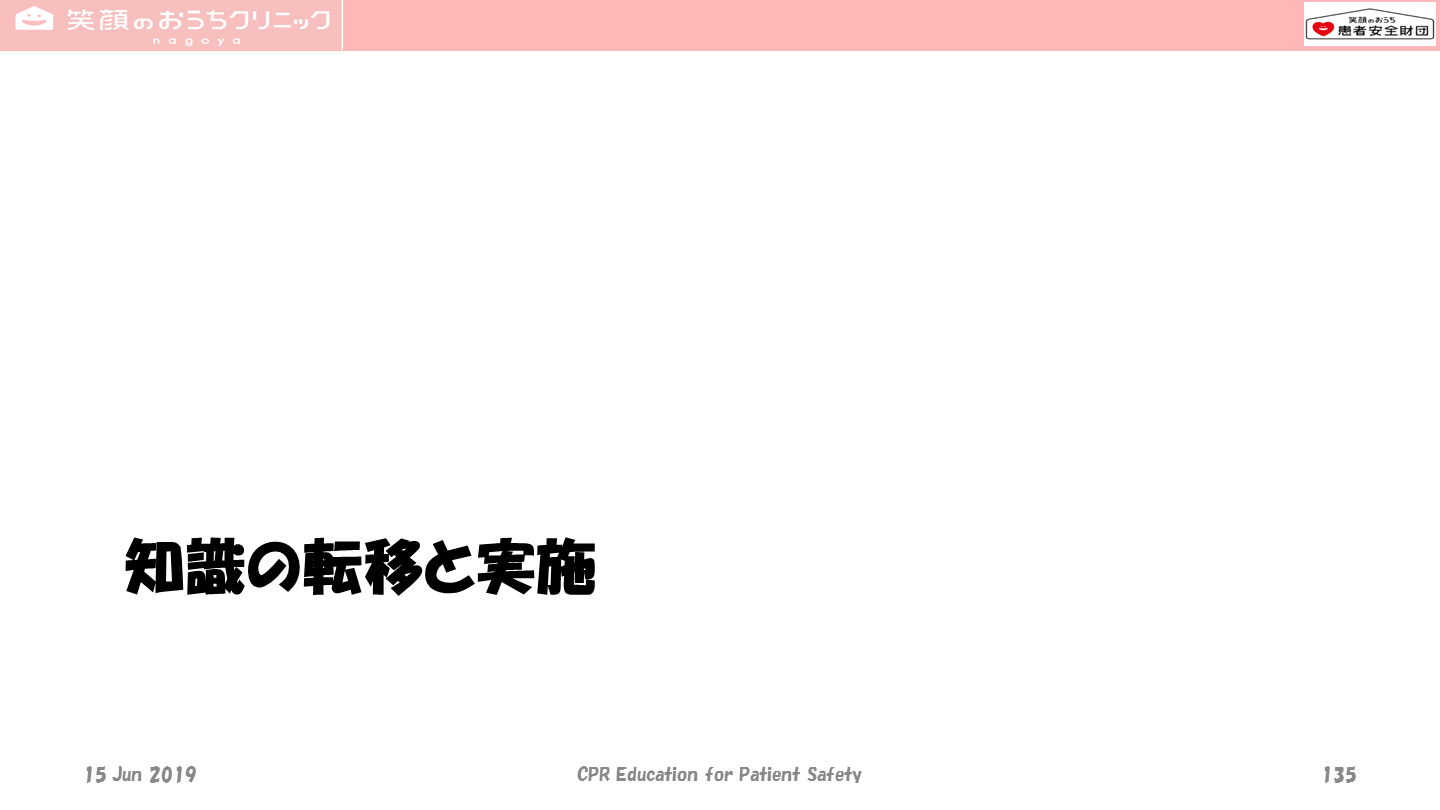 知識の転移と実施 15 Jun 2019 CPR Education for Patient Safety 135 #136.