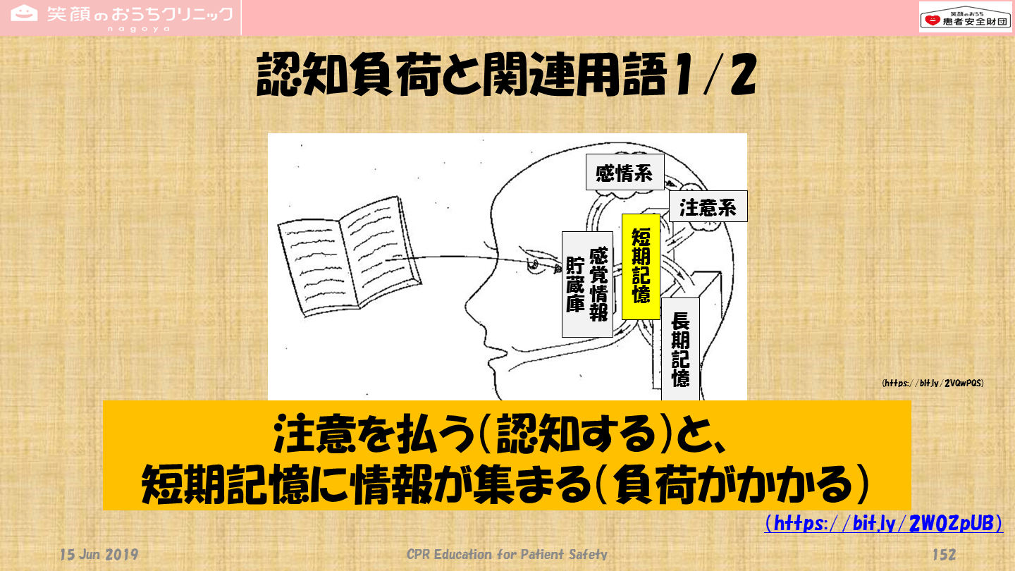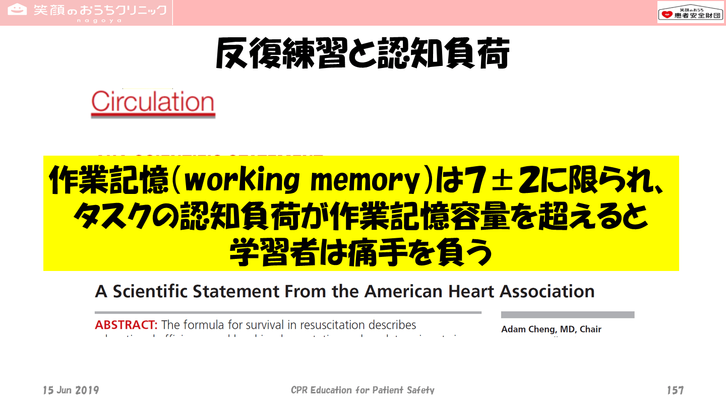 15 Jun 2019 CPR Education for Patient Safety 155 大きな認知負荷を