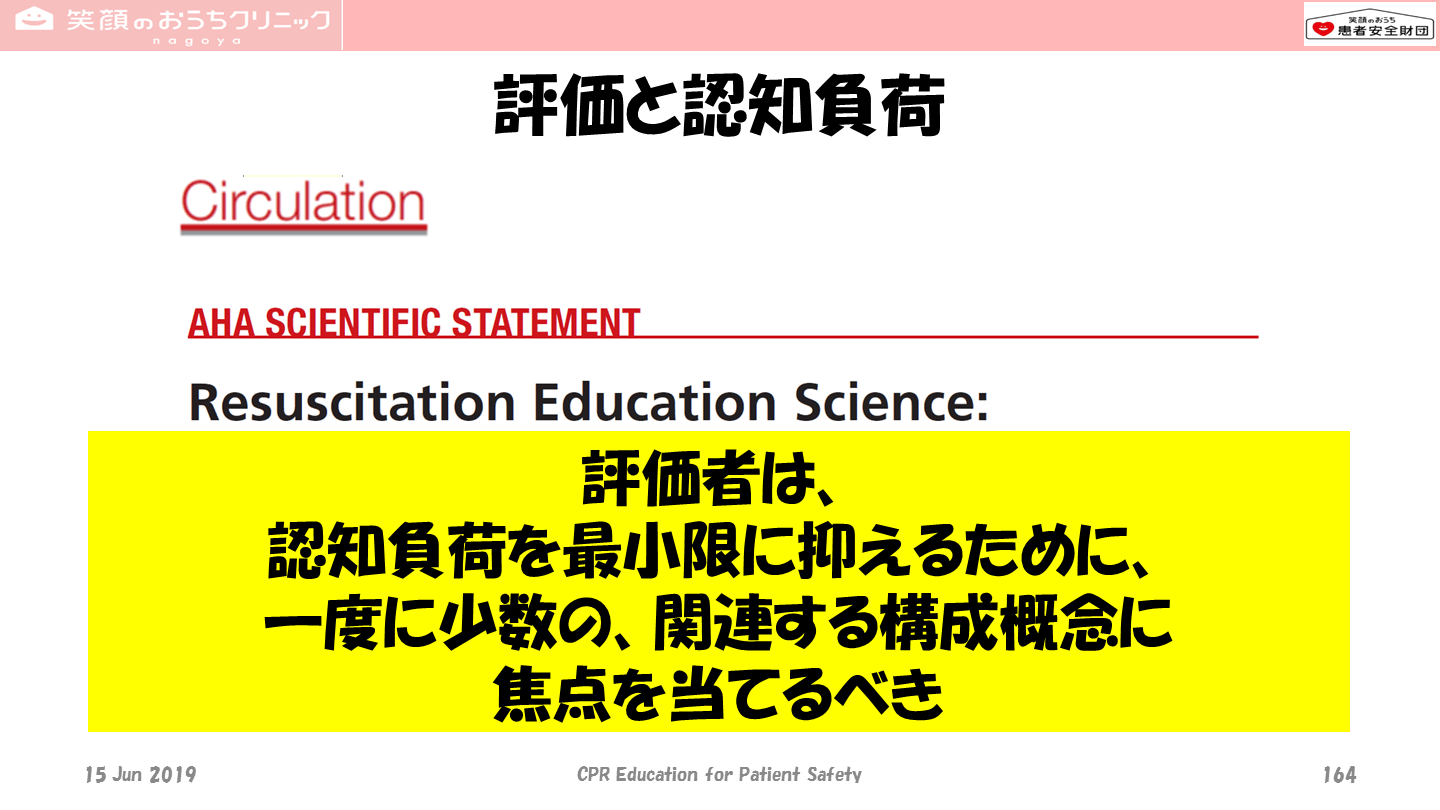 評価と認知負荷 15 Jun 2019 CPR Education for Patient Safety 164 評価者は、