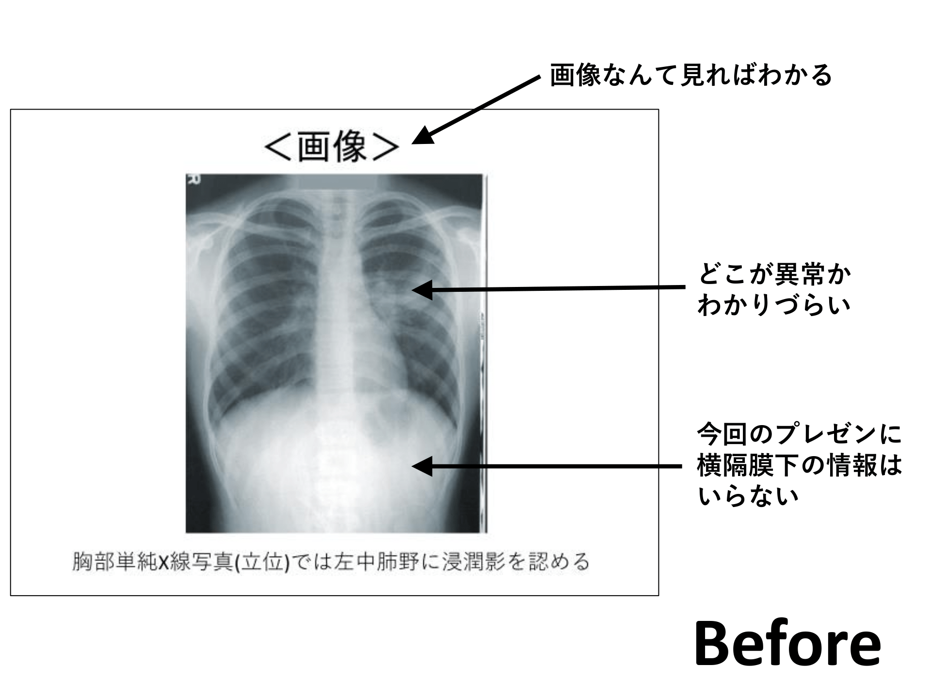 #18. 画像なんて見ればわかる どこが異常か わかりづらい 今回のプレゼンに 横隔膜下の情報は いらない Before