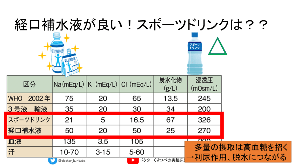 #20. 経口補水液が良い!スポーツドリンクは?? 多量の摂取は高血糖を招く