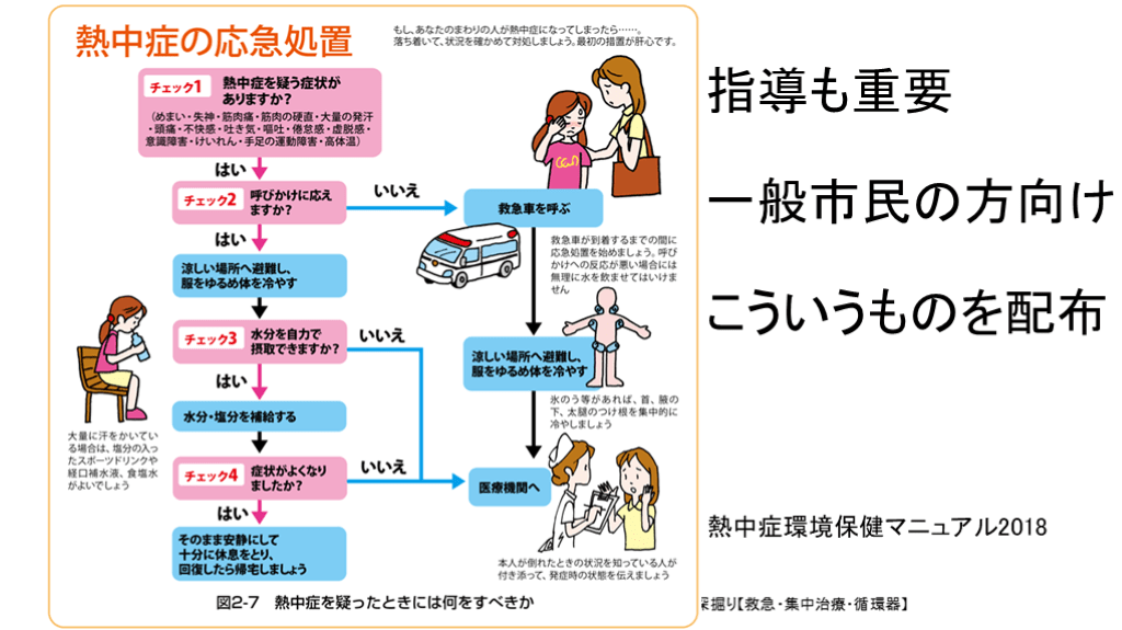 #21. 指導も重要一般市民の方向けこういうものを配布 熱中症環境保健マニュアル2018