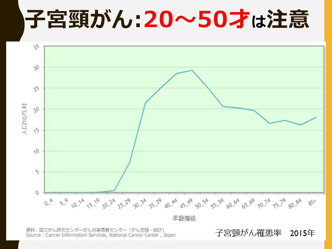 #13. 子宮頸がん:20~50才は注意 子宮頸がん罹患率 2015年
