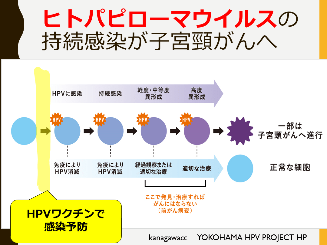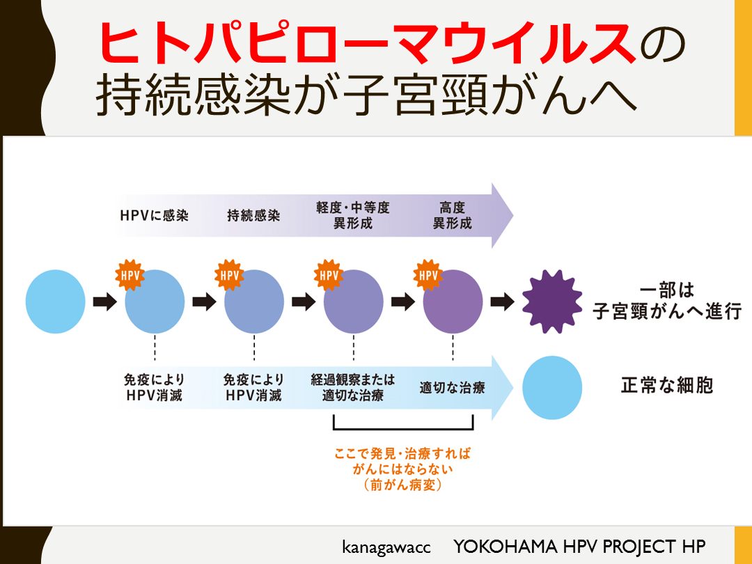 #44. ヒトパピローマウイルスの持続感染が子宮頸がんへ  kanagawacc  YOKOHAMA HPV PROJECT HP HPVワクチンで
