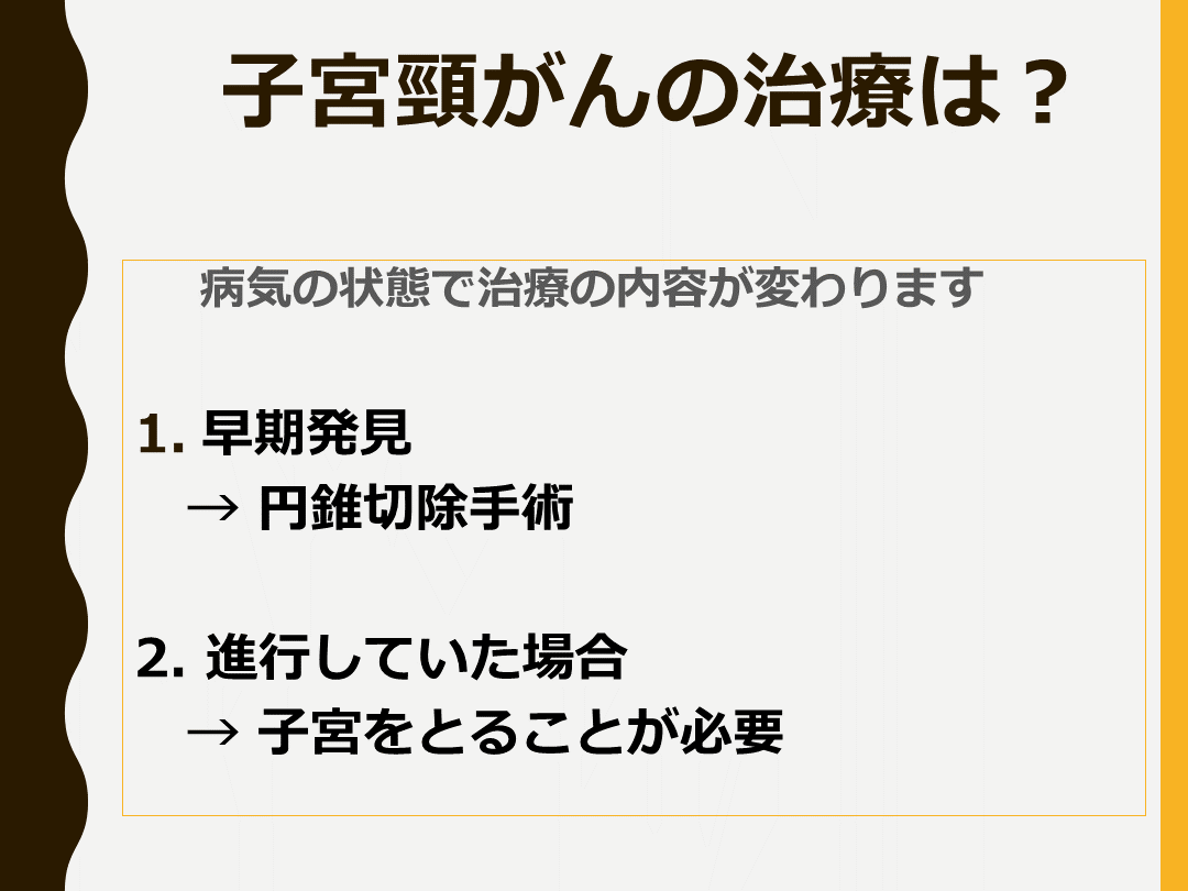 #29.  子宮頸がんの治療は?   病気の状態で治療の内容が変わります