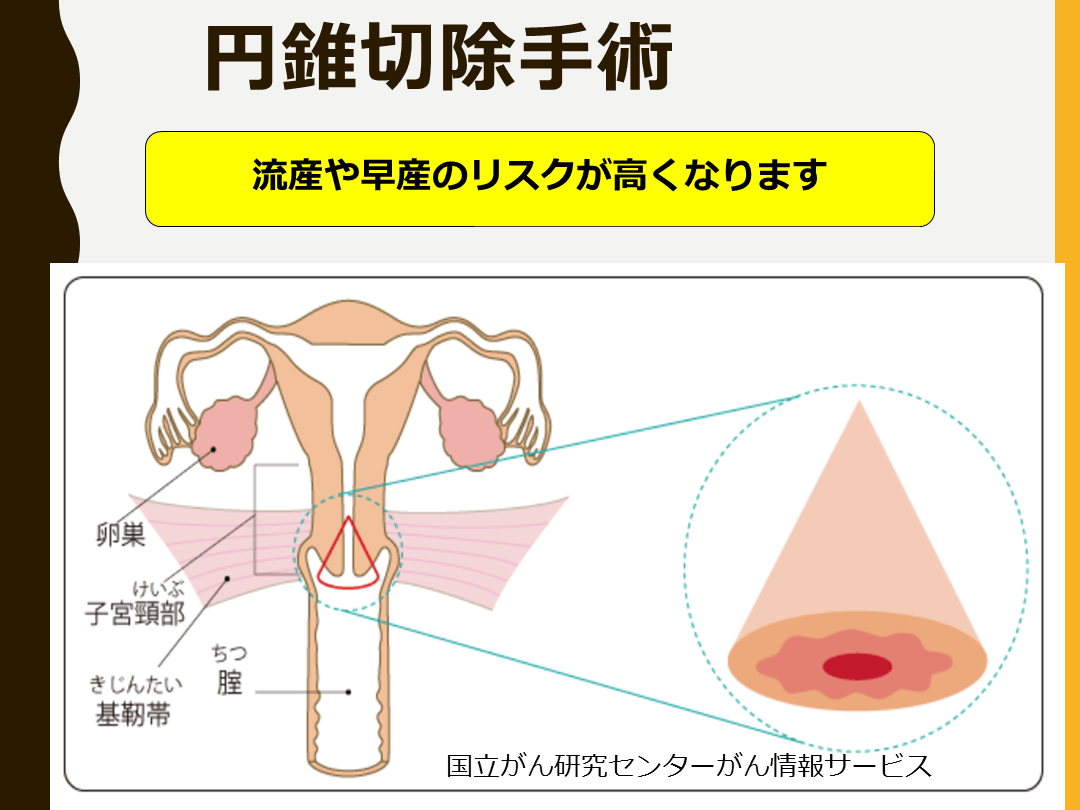 #31.  円錐切除手術 国立がん研究センターがん情報サービス 流産や早産のリスクが高くなります