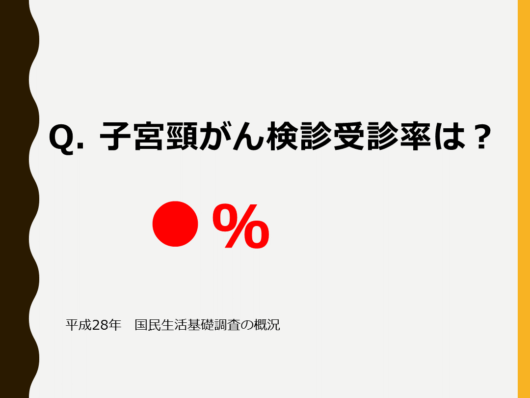 #38. Q. 子宮頸がん検診受診率は?    ●% 平成28年 国民生活基礎調査の概況
