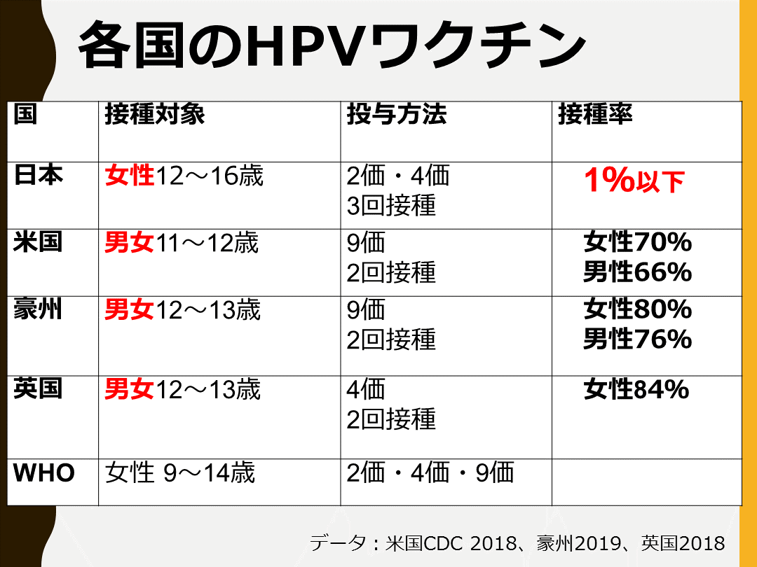#52. 各国のHPVワクチン データ:米国CDC 2018、豪州2019、英国2018