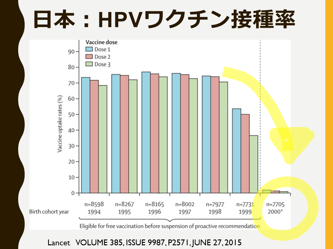 #53.  日本:HPVワクチン接種率 Lancet   VOLUME 385, ISSUE 9987, P2571, JUNE 27, 2015