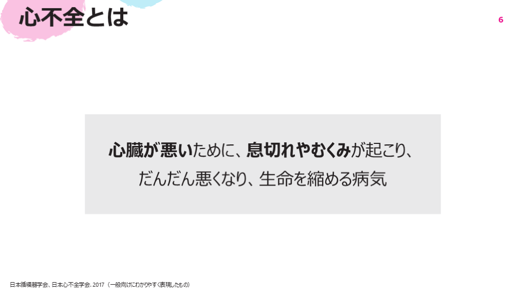 #6. 心不全とは 心臓が悪いために、息切れやむくみが起こり、