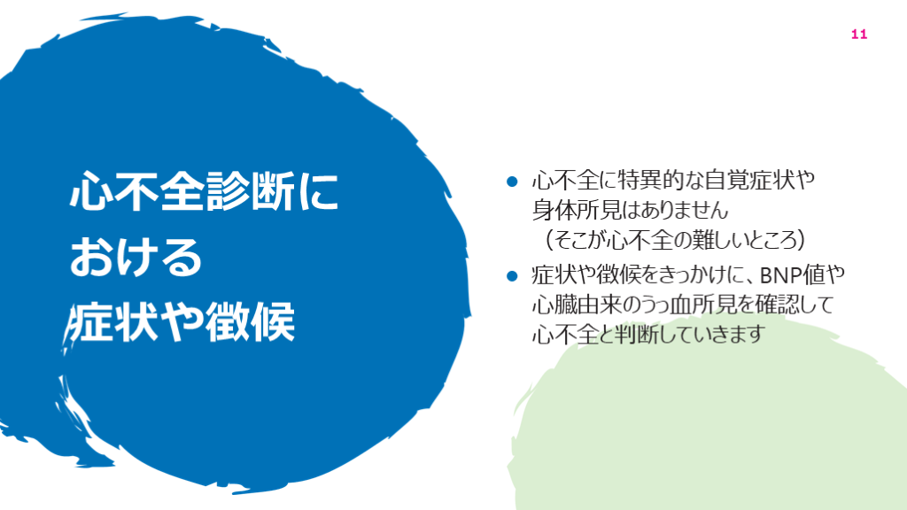 #11. 心不全診断における症状や徴候 心不全に特異的な自覚症状や身体所見はありません(そこが心不全の難しいところ)