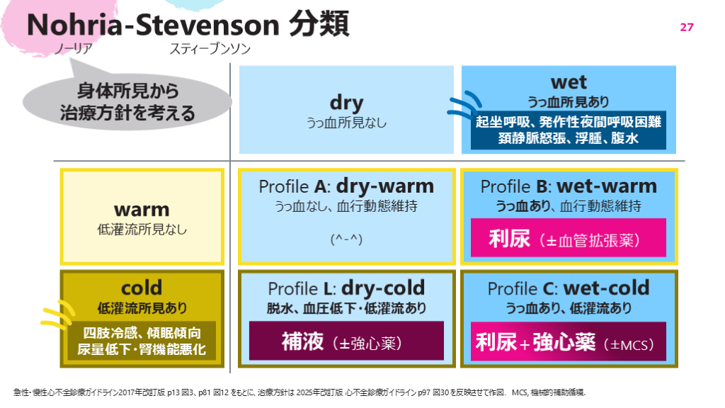 Nohria-Stevenson分類(身体所見から 4 群に分類し治療)