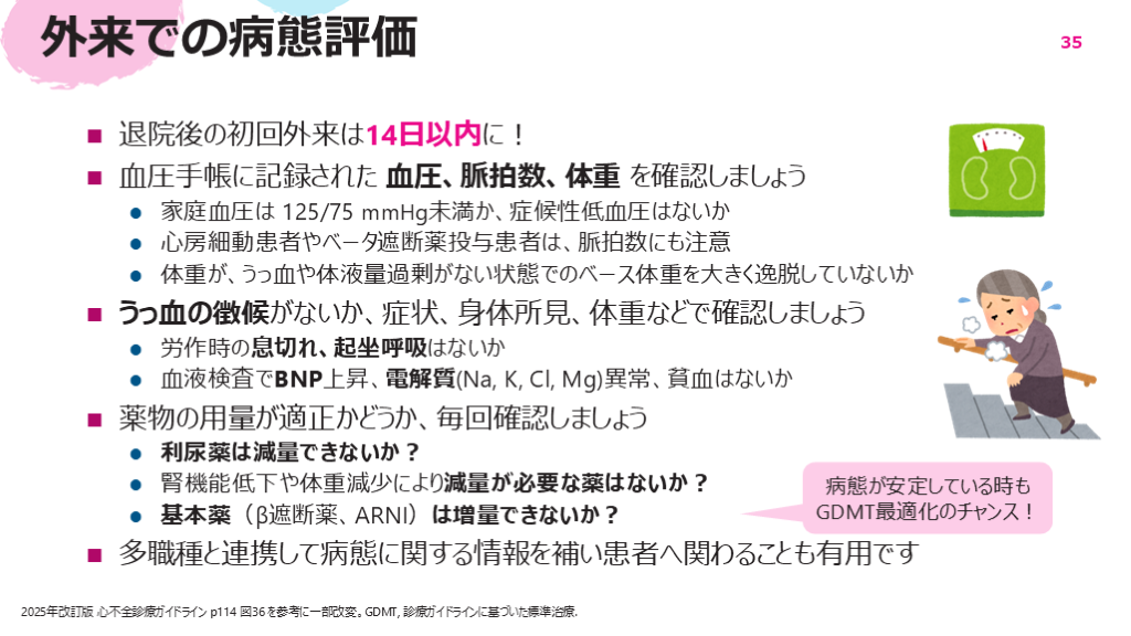 GDMT最適化のチャンス! 2025年改訂版 心不全診療ガイドライン p114 図36 を参考に一部改変。GDMT, 診療ガイドラインに基づいた標準治療.