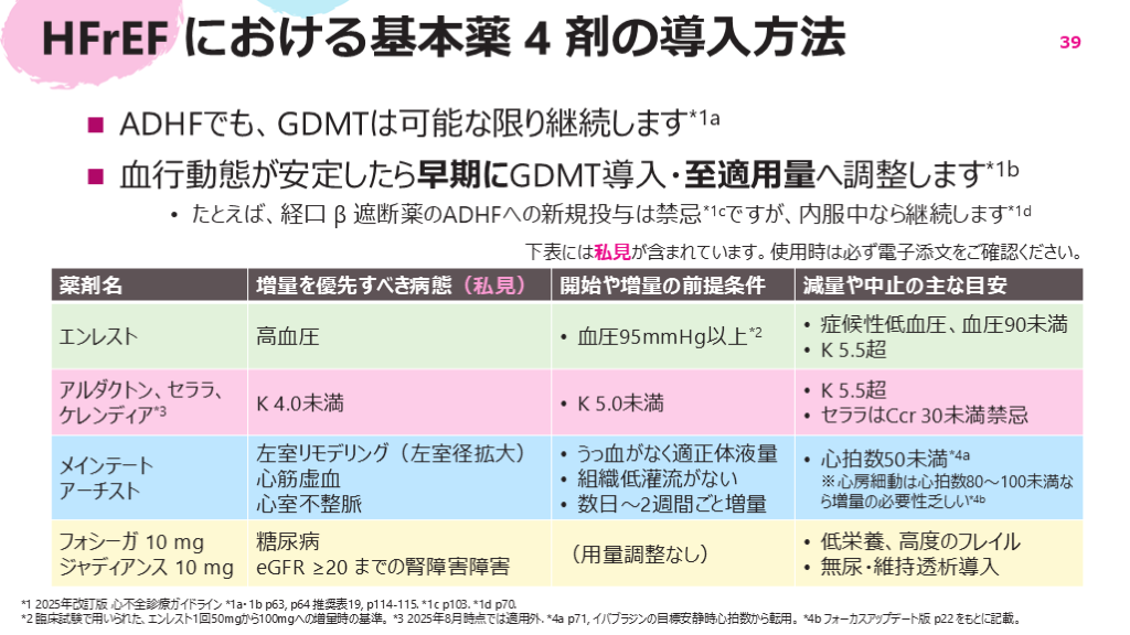 #39. HFrEF における基本薬 4 剤の導入方法 ADHFでも、GDMTは可能な限り継続します*1a