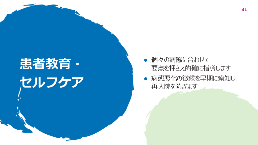 #41. 患者教育・セルフケア 個々の病態に合わせて要点を押さえ的確に指導します