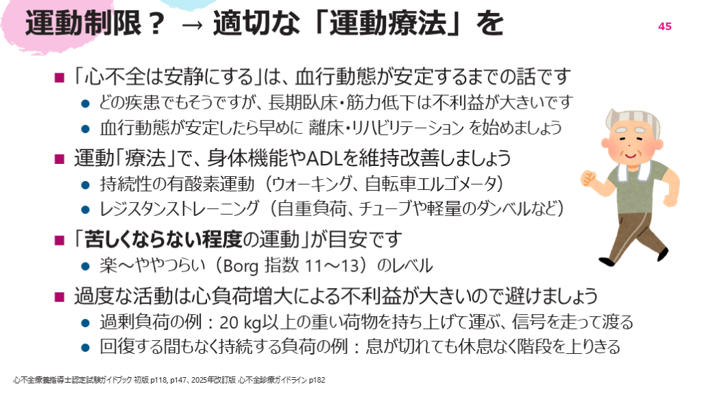 #45. 運動制限? → 適切な「運動療法」を 「心不全は安静にする」は、血行動態が安定するまでの話です